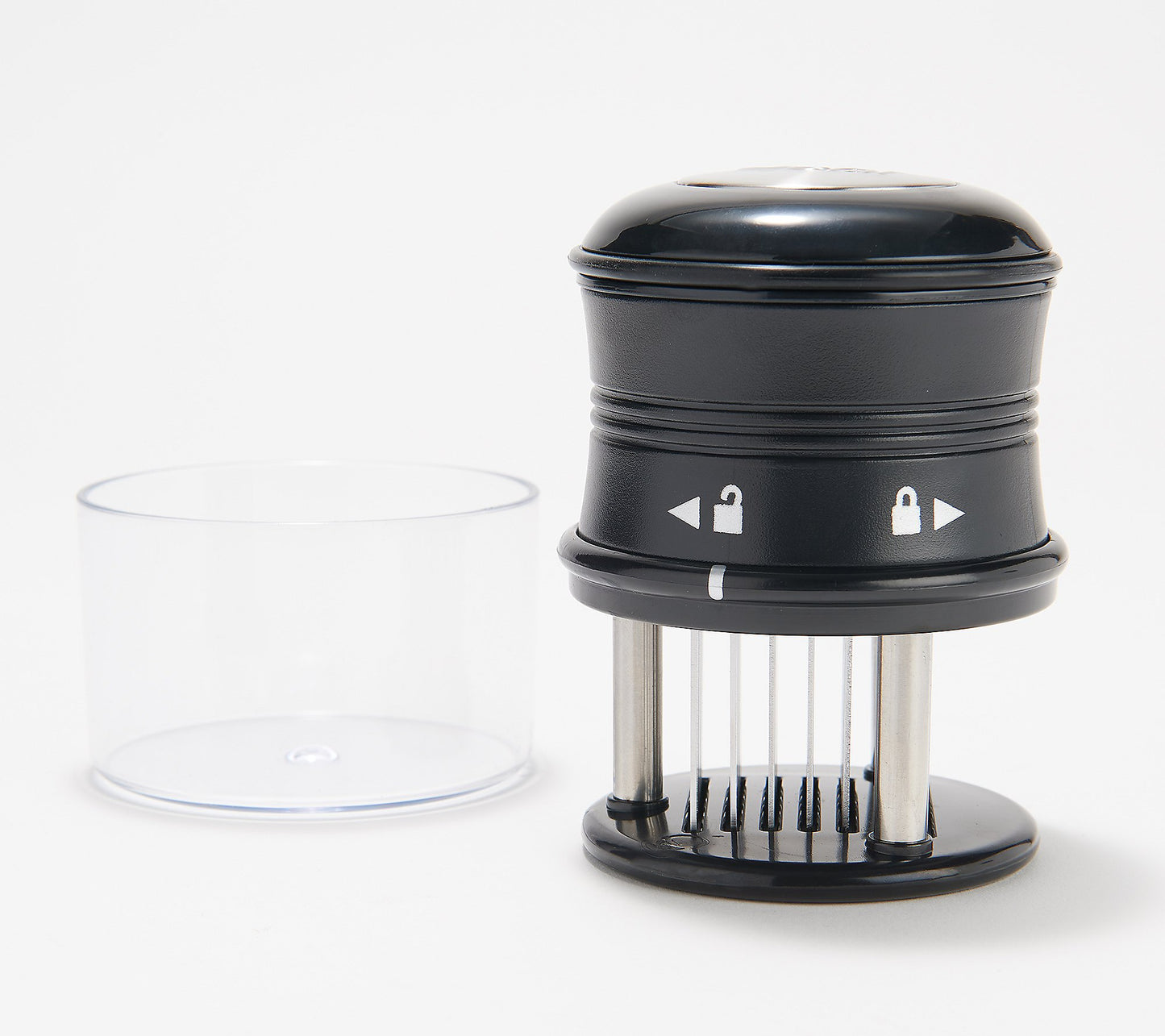 Deni 49-Blade Meat Tenderizer lets you enjoy even the toughest cuts by precisely piercing the meat with 49 Stainless Steel Blades all at the same time. Just push the tenderizer over the top of steak, pork, poultry, or fish and enjoy mouthwatering results in less time.